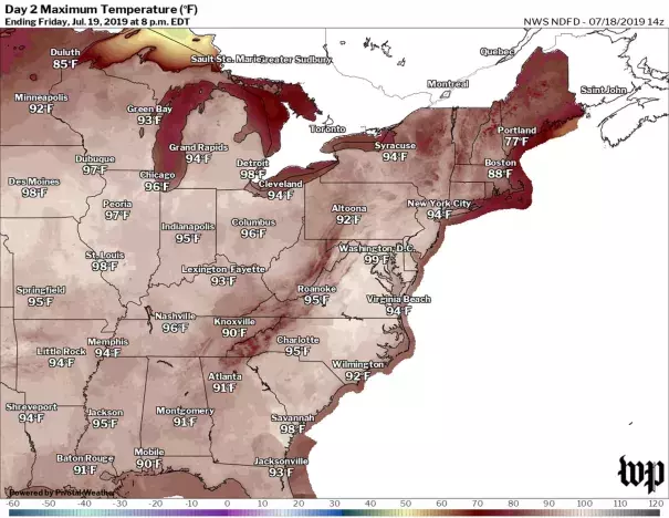 Heat advisories and warnings affect 154 million Americans. In many major population centers, the heat index — how hot it feels factoring in the humidity — is forecast to peak around 110 degrees between Friday and Sunday. The actual air temperature is expected to reach at least 95 for more than half the population of the Lower 48 over the next several days.