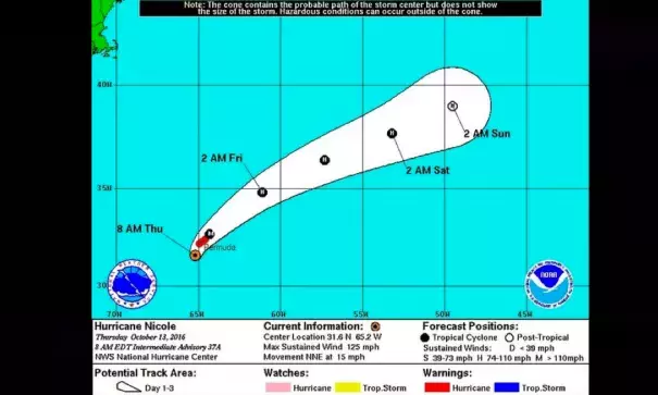 Hurricane Nicole 2016 path update: Bermuda braces for hit from Category 3 storm