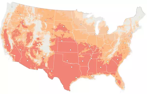 This map provides a glimpse of our future if nothing is done to slow climate change. By the end of the century, the number of 100-degree days will skyrocket, making working or playing outdoors unbearable, and sometimes deadly. The effects on our health, air quality, food and water supplies will get only worse if we don’t drastically cut greenhouse gas emissions right away.