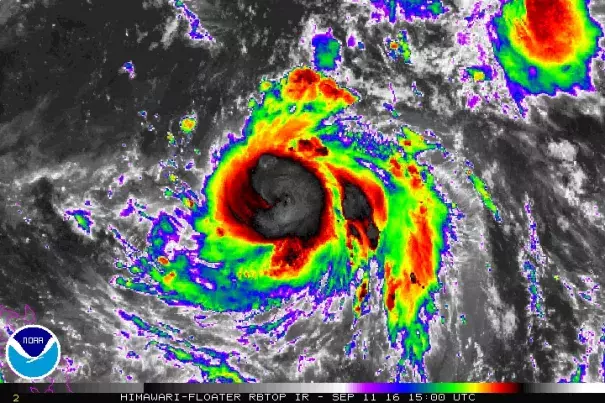 Meranti’s top winds, as reported by the Joint Typhoon Warning Center using the 1-minute U.S. standard, jumped from 40 to 85 mph in the 24 hours leading up to 12Z Sunday. This meets the National Hurricane Center (NHC) definition of rapid intensification: an increase in the maximum sustained winds of a tropical cyclone of at least 30 knots (35 mph) in 24 hours.