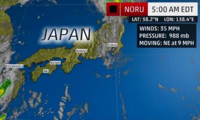 Tropical Storm Noru Lashing Central Japan With Heavy Rain and Strong Winds; More Than Two Feet Of Rain Reported