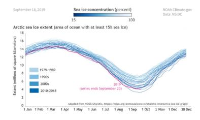 2019 Arctic sea ice extent ties for second-lowest summer minimum on record