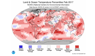 February 2017: Earth's 2nd Warmest February and 4th Warmest Month in Recorded History