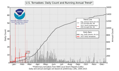 U.S. Preliminary Tornado Reports in 2017 the Highest in 5 Years