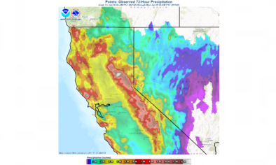 Fire-hose storm induces road-closing mudslides and major flooding in California
