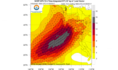 California Will Be Pummeled By Atmospheric River Event This Weekend; Heavy Rain and Snowmelt to Cause Flooding and Landslides