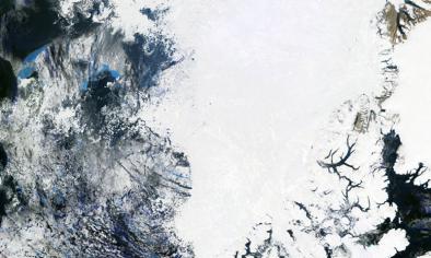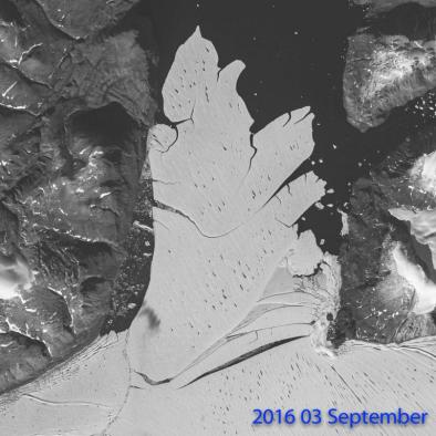 Separation of Manhattan Is. sized ice shelf pieces from 79 Glacier far northwestern Greenland - Professor Jason E. Box