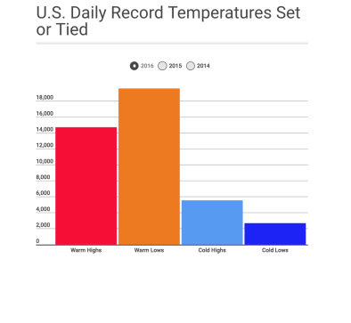 U.S. Warm Records Are Trouncing Cold Records by 4 to 1 Margin in 2016