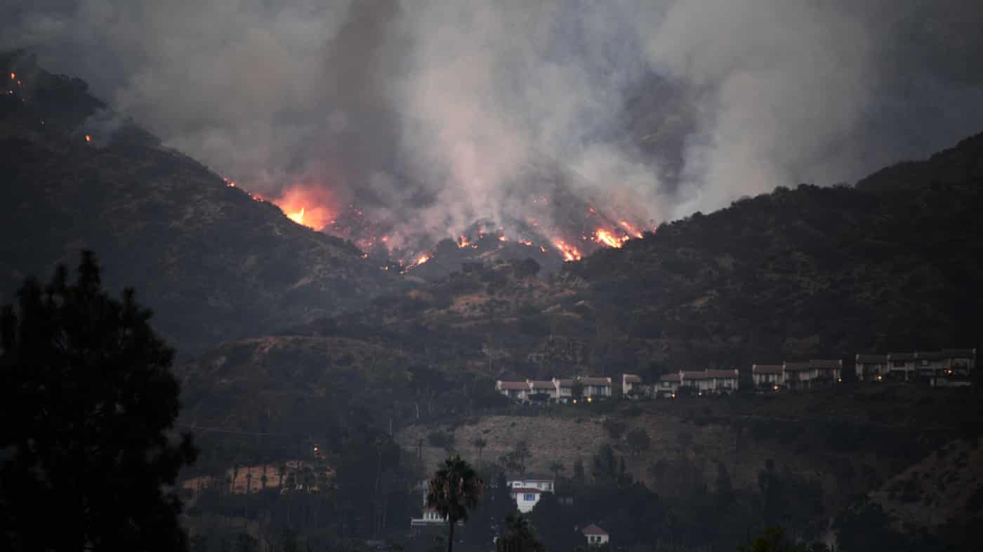 The La Tuna fire burns above downtown Burbank, California. Photograph: Robyn Beck/AFP/Getty Images