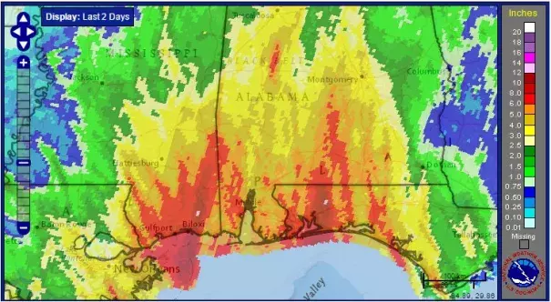Tweet: Cindy rainfall totals in previous 48 hours (June 22, 2017) by NWS WPC on Twitter Original TweetHere's a look at how much precip has fallen in the last 48 hours #mswx #alwx #flwx Go to Site